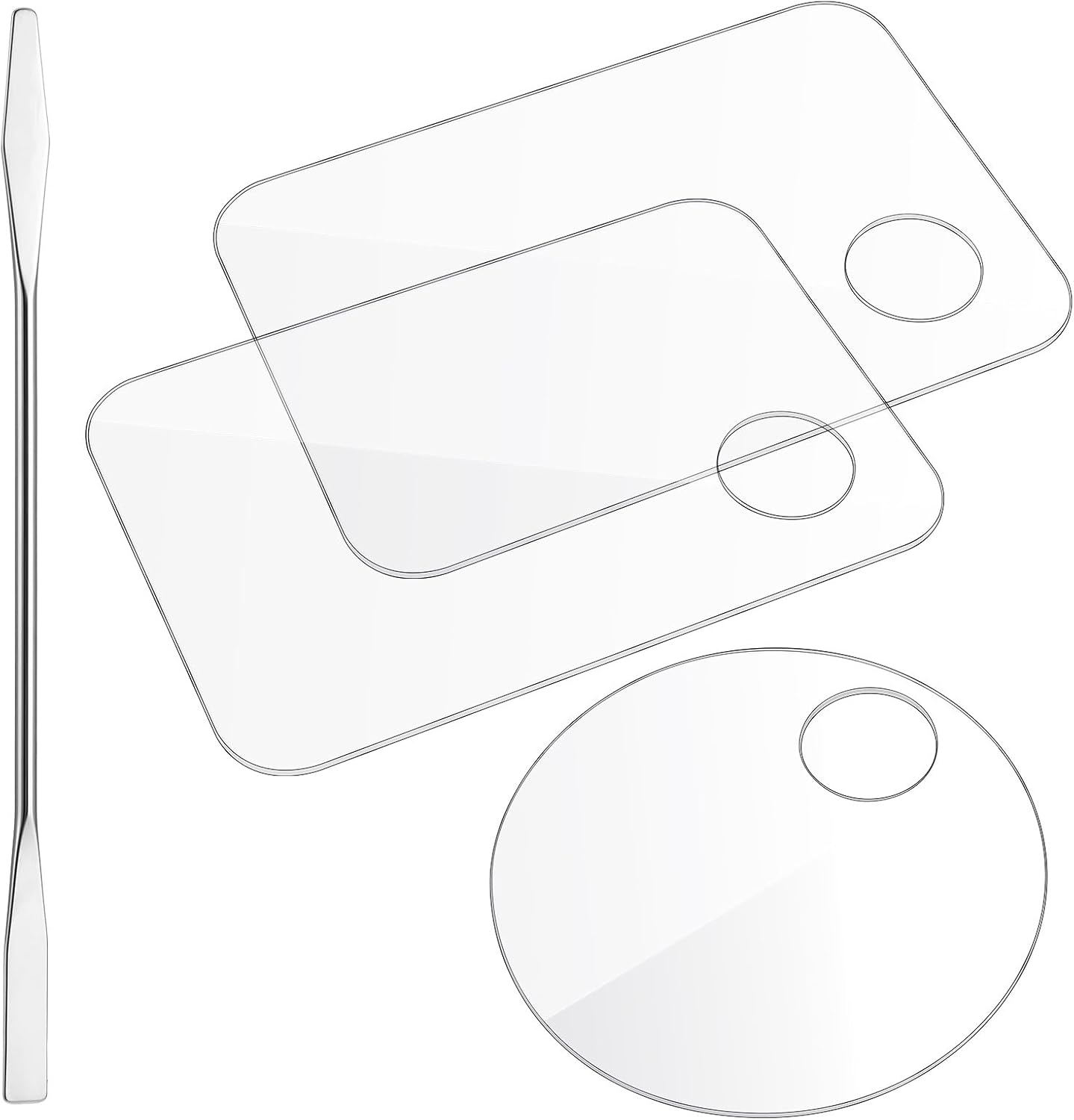3 Pcs Acrylic Makeup Palette with 3Pcs Makeup Spatula, Makeup Palette Tray Apply for Foundation Eye Shadow Lipsticks Nail Art Professional Pigment Blending