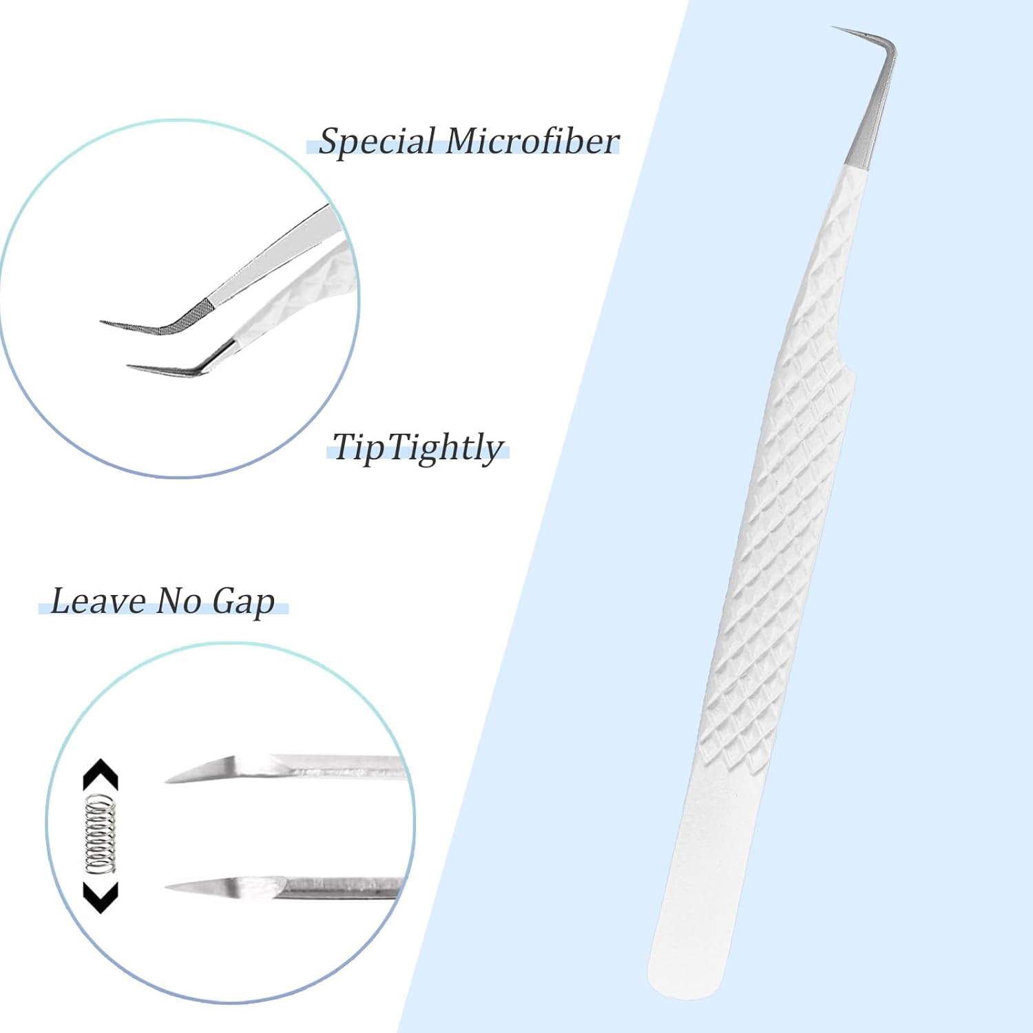 Lash Tweezers For Eyelash Extensions Fiber Tip Lash Tweezers For Women Precision Tweezers Professional Craft Tweezers, Fiber Tip Japanese Steel (White-90 Degree)