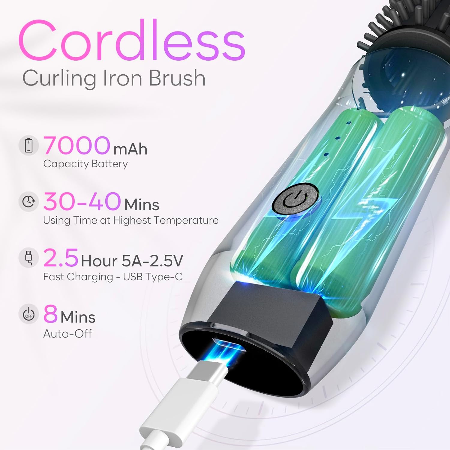 - 【Cordless & Portable】: This cordless curling iron brush features a wireless design, making it compact and easy to carry. It operates without the need for a power outlet, allowing you to style your hair conveniently when you're out and about.