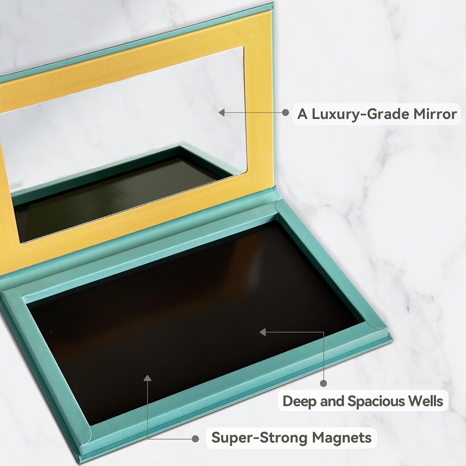 - Enough Space and Depth: The exterior dimension of the palette is 8.06" L x 5.11" W x 0.71" D, and the interior dimension is 7.1''L x 4.13'' W x 0.28'' D, allowing you to store up to 28 eyeshadow iron pans with 1-inch diameter. It can easily carry all kinds of pans you have.