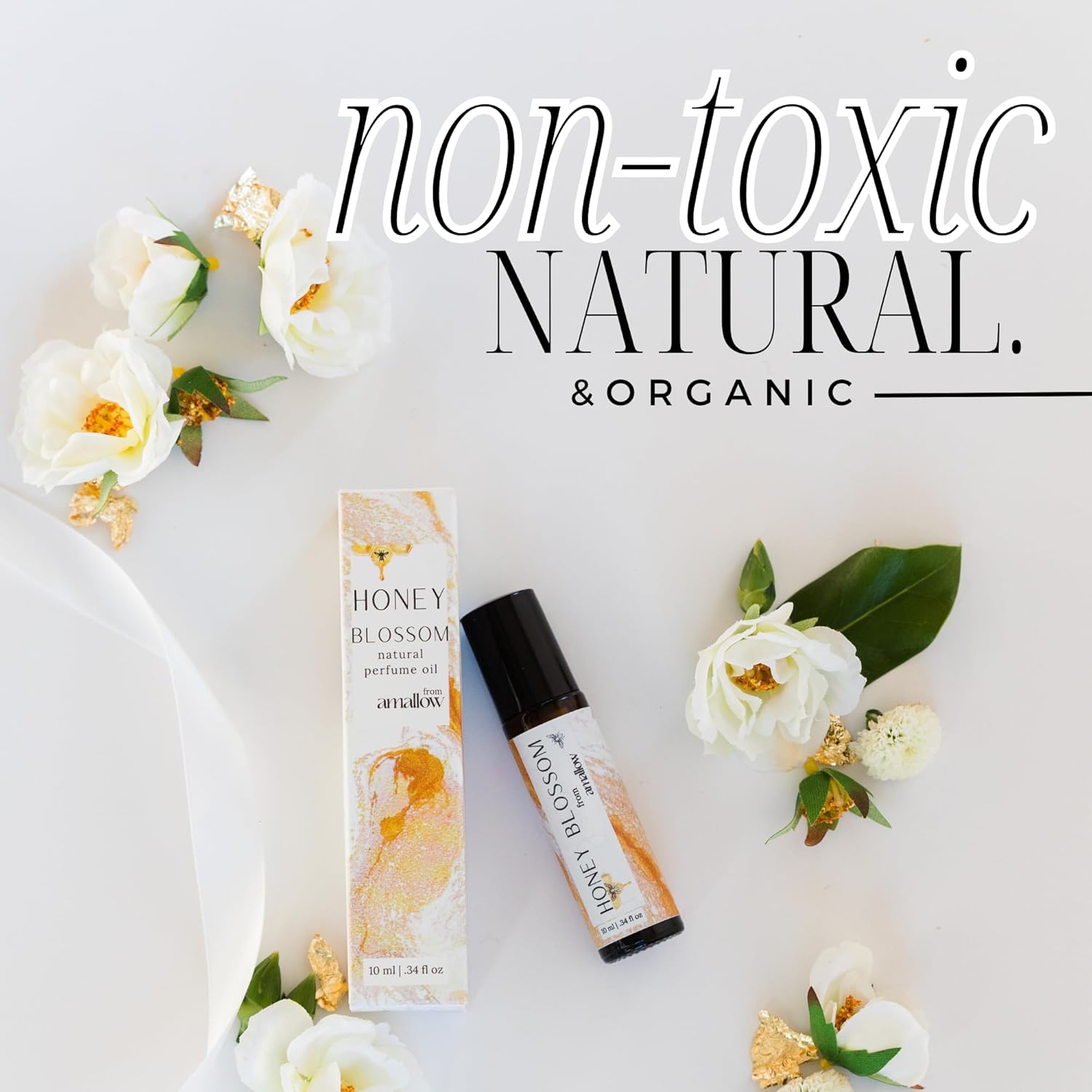 Amallow All Natural Non-Toxic Perfume Roller - Made With Pure and Organic Essential Oils - Hints of Honey, Vanilla, Lavender, Frankincense, Bergamot, Rosemary & Chamomile (Honey Blossom)