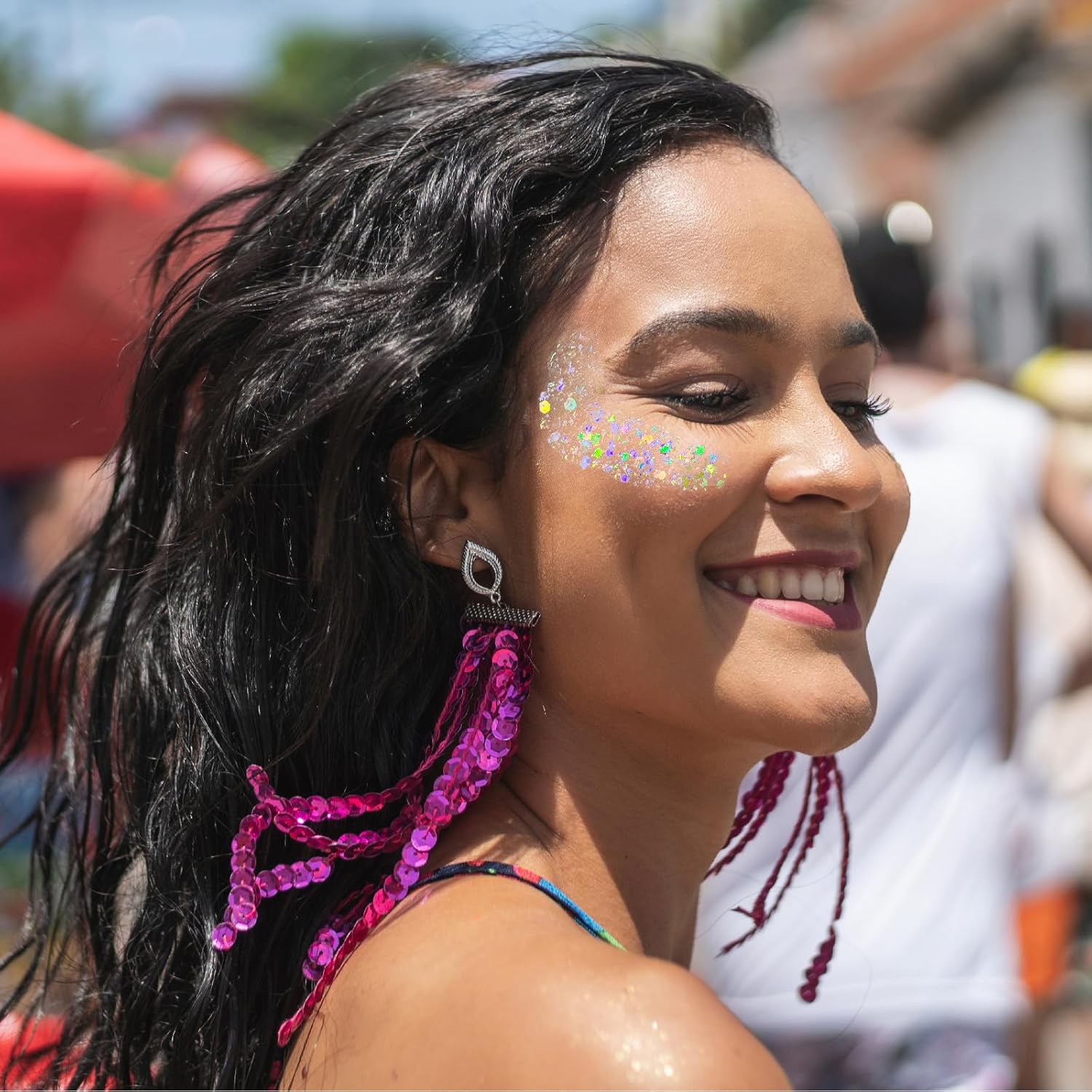 - Add a vibrant and shimmering touch to your makeup and costume with this glitter gel