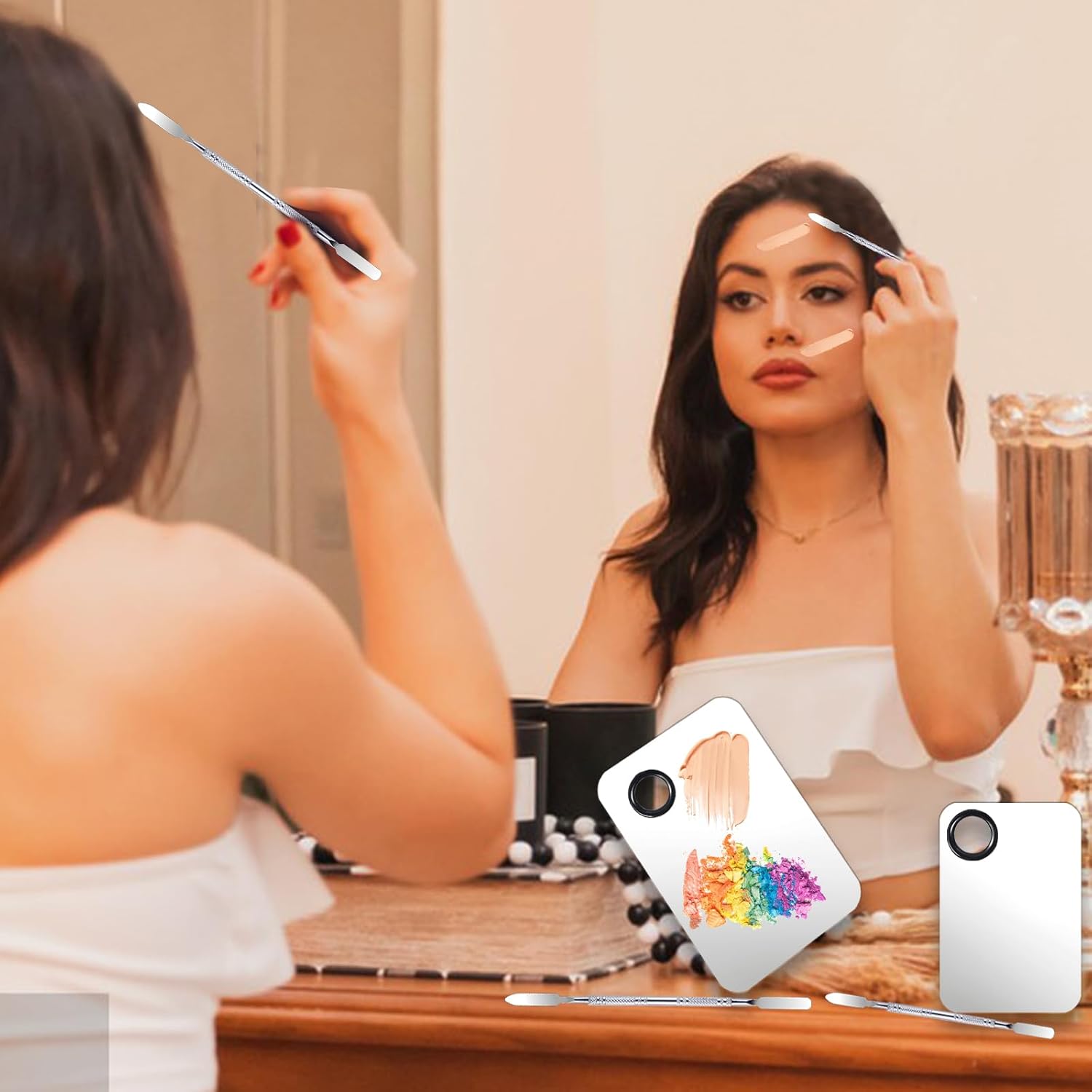 - 【Wide Applications】This makeup mixing tray can not only be used for mixing colors but also serves as a mirror.Makeup tools is suitable for blending a variety of cosmetics such as foundation,eyeshadow,mascara,lipstick and can also be used with nail polish,gels,nail art pigments