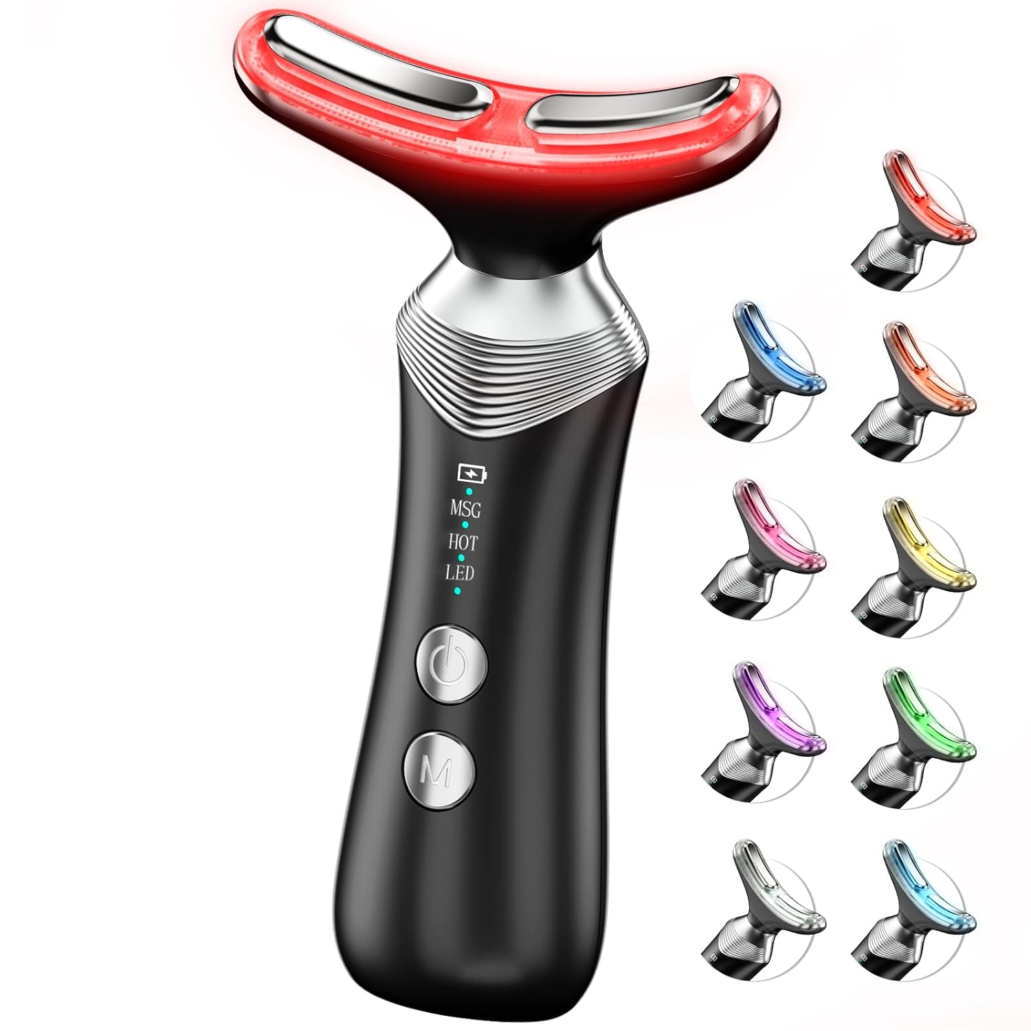 9-in-1 Red-Light-Therapy-for-Face-and-Neck, Portable Facial Massager Tool with Adjustable Vibration & Thermals for Wrinkles, Double Chin, Black