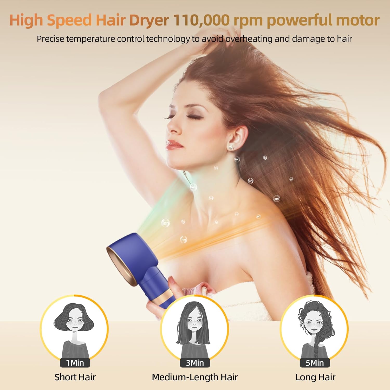 - High-Speed Brushless Motor: Professional hair styler set certainly needs to be equipped with Powerful Power! This Hair Multifunctional Styler boasts a powerful motor operating at 110000 revolutions per minute, style your hair while drying in just 3-4 minutes, reduce frizz for smoother, healthier-looking hair