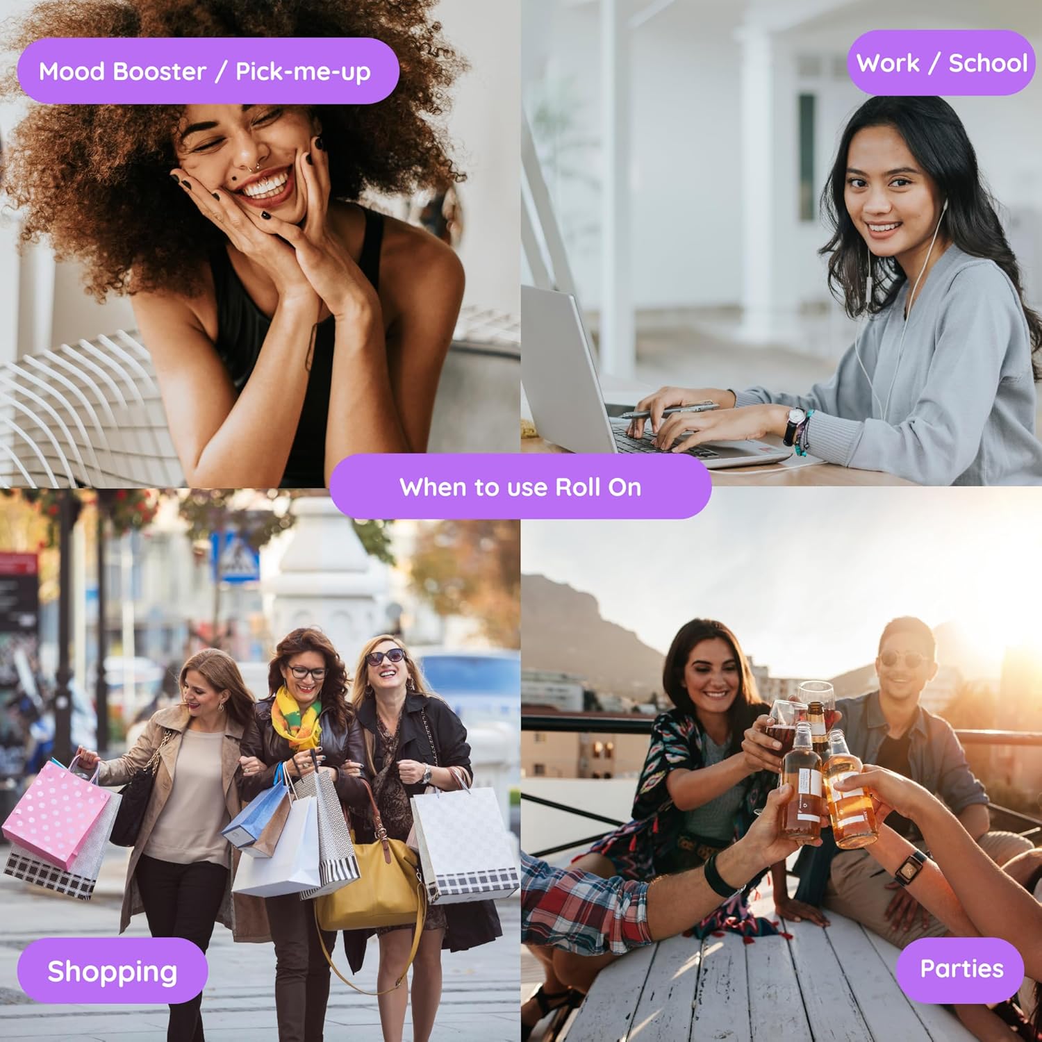 - ON-THE-GO CONVENIENCE - Our roll-ons are thoughtfully crafted with a travel-friendly size, making them perfect companions for your daily adventures. Slip one into your bag or pocket and effortlessly elevate your mood anytime, anywhere. The sleek and compact design ensures mess-free application, while the rollerball glides smoothly over your skin, delivering the perfect amount of scent with each stroke.