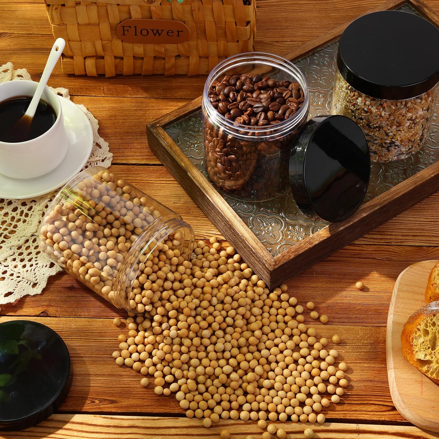 - Quality Material: these transparent containers jars are made of quality PET plastic with cylindrical design, thick and wear-resistant, ideal for long-time use