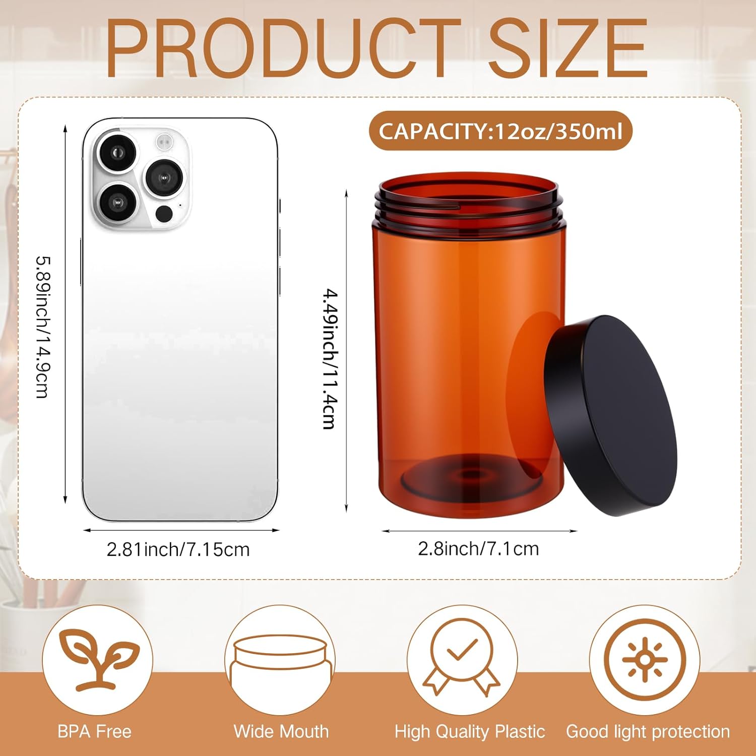 - Product size: each wide-mouth plastic containers jars measure 7.1 cm/ 2.8 inches in diameter, 11.4 cm/ 4.49 inches in height wide, the volume is 12 oz; These are empty jars, great for meal preparation, condiments, DIY crafts, creams, butters, lotions and others