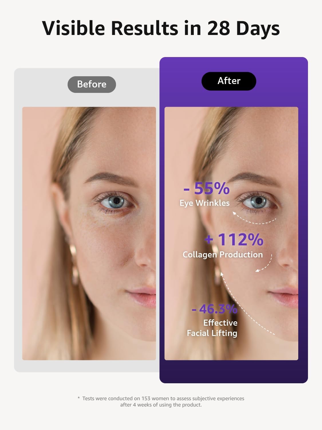- Clinically Proven Benefits: Experience remarkable transformations, including a 452.3% increase in collagen production, a 39.7% reduction in sagging skin, a 32.8% decrease in wrinkles, a 47.6% improvement in skin smoothness, and enhanced firmness and elasticity after just a 3-week session. Results are based on clinical studies; individual outcomes may vary
