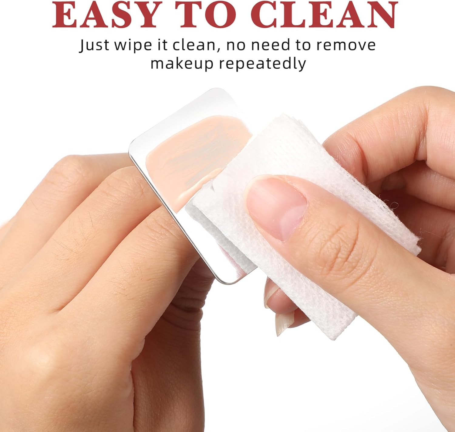 - Small Steel Cosmetic Palette --- Designed with a ring holder, which is convenient to grasp, frees your hands, and is easy to fix. Easy to clean, ensuring that you can switch colors seamlessly without any left