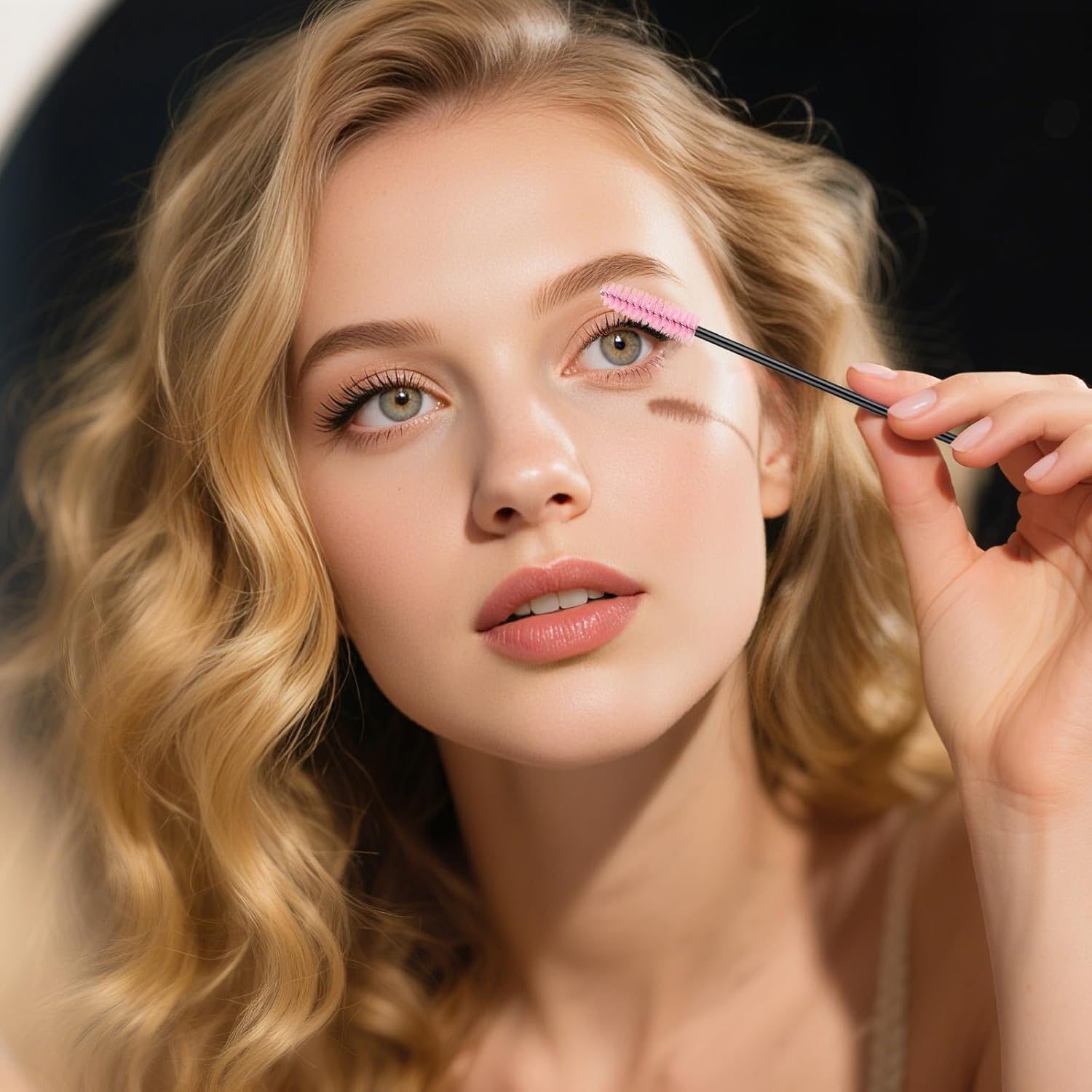 BTYMS 500 Pieces Disposable Mascara Wands Eyelash Brush Brow Brushes Applicators Lash Spoolies for Eye Lash Extension - Pink