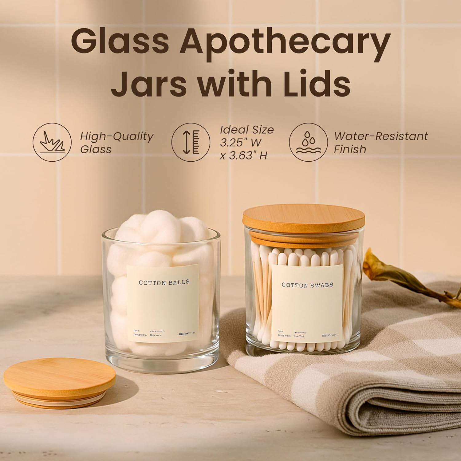 - Elegant Design: Elevate your space with this bathroom qtip holder set blending style with functionality. These classic glass apothecary jars with lids contains and organizes your bathroom essentials and is the perfect accessory for your space.