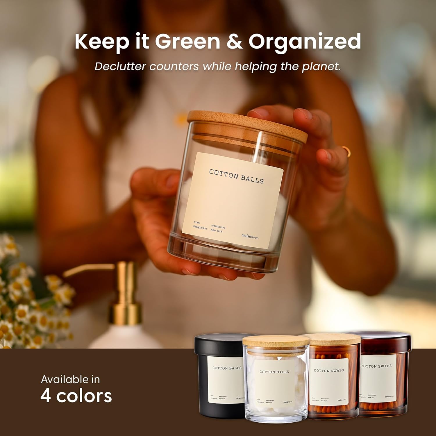 - Save Space on Your Countertop: You can store more in less space with jars that are compact yet roomy enough for daily essentials with our cotton ball and qtip holder set