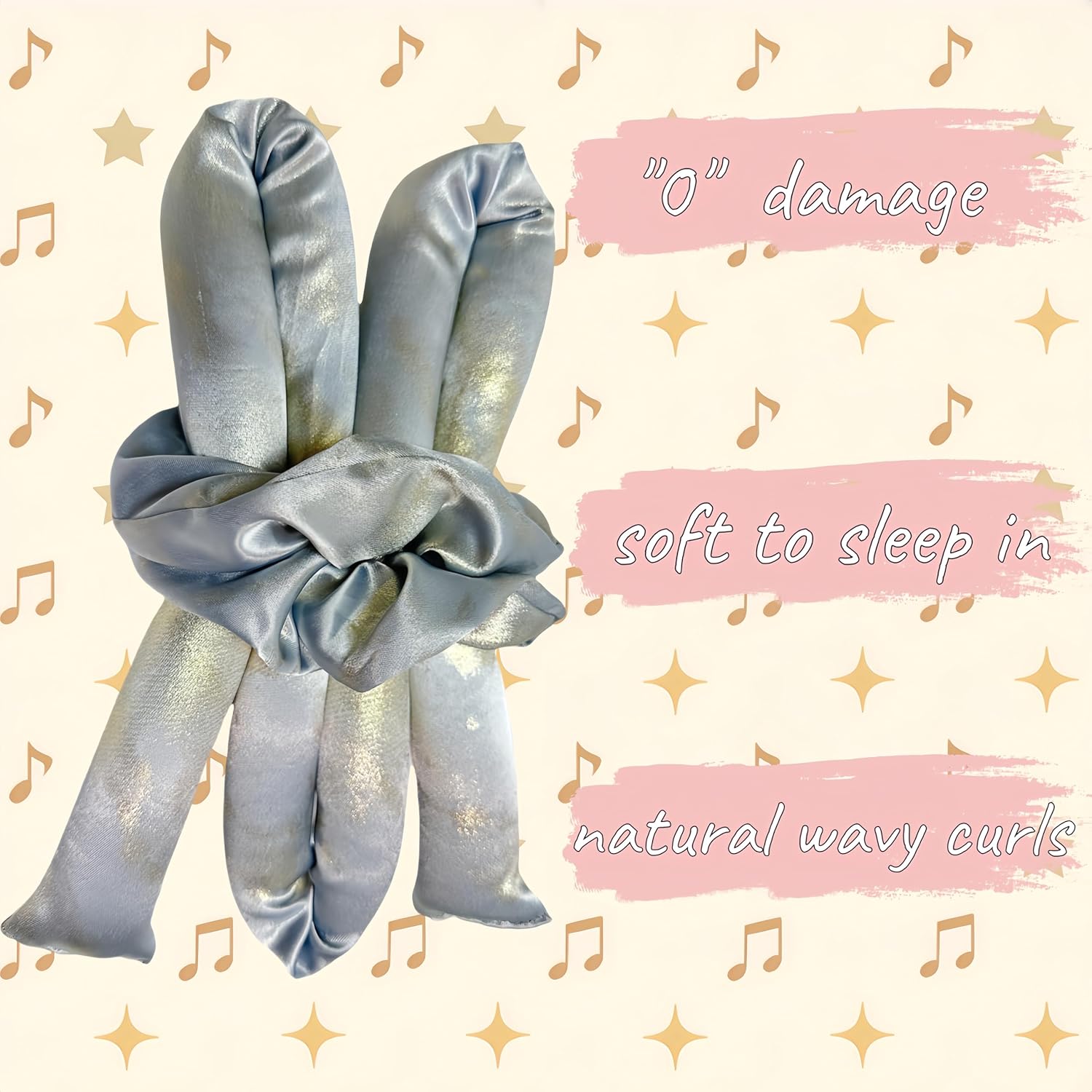 Serenade Sparkling Satin Heatless Curls Overnight, Heatless Hair Clurer Curling Rod Headband, No Heat Curling Rod Hair Roller for Women and Girls to sleep in, Blue
