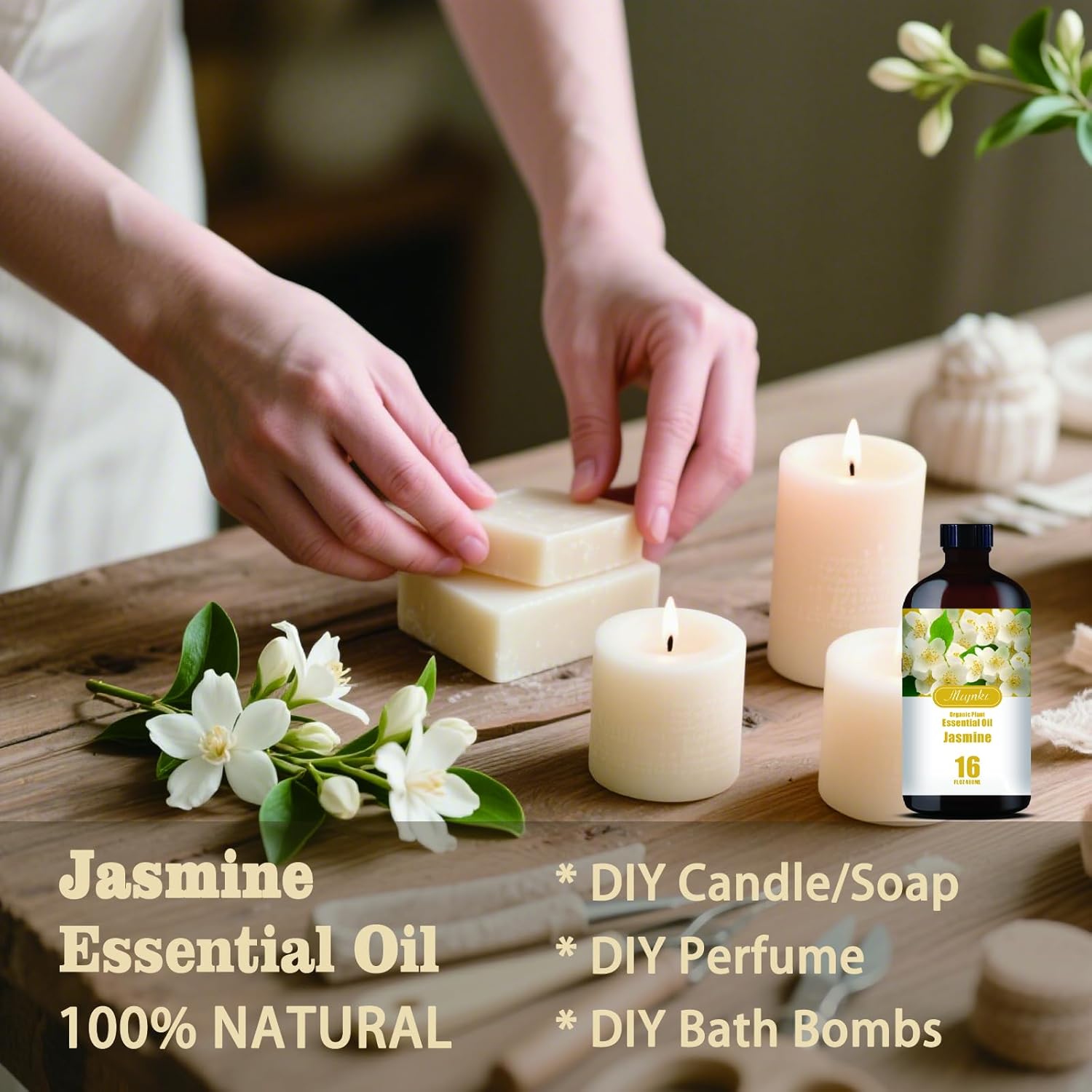 Jasmine Essential Oil-Jasmine Fragrance Oil 16.33oz (490ml)-100% Pure Natural Scent for Diffusers, Candles, Soap Making & Aromatherapy-Relaxing Home & Gift Essential Oil for Bath, Massage